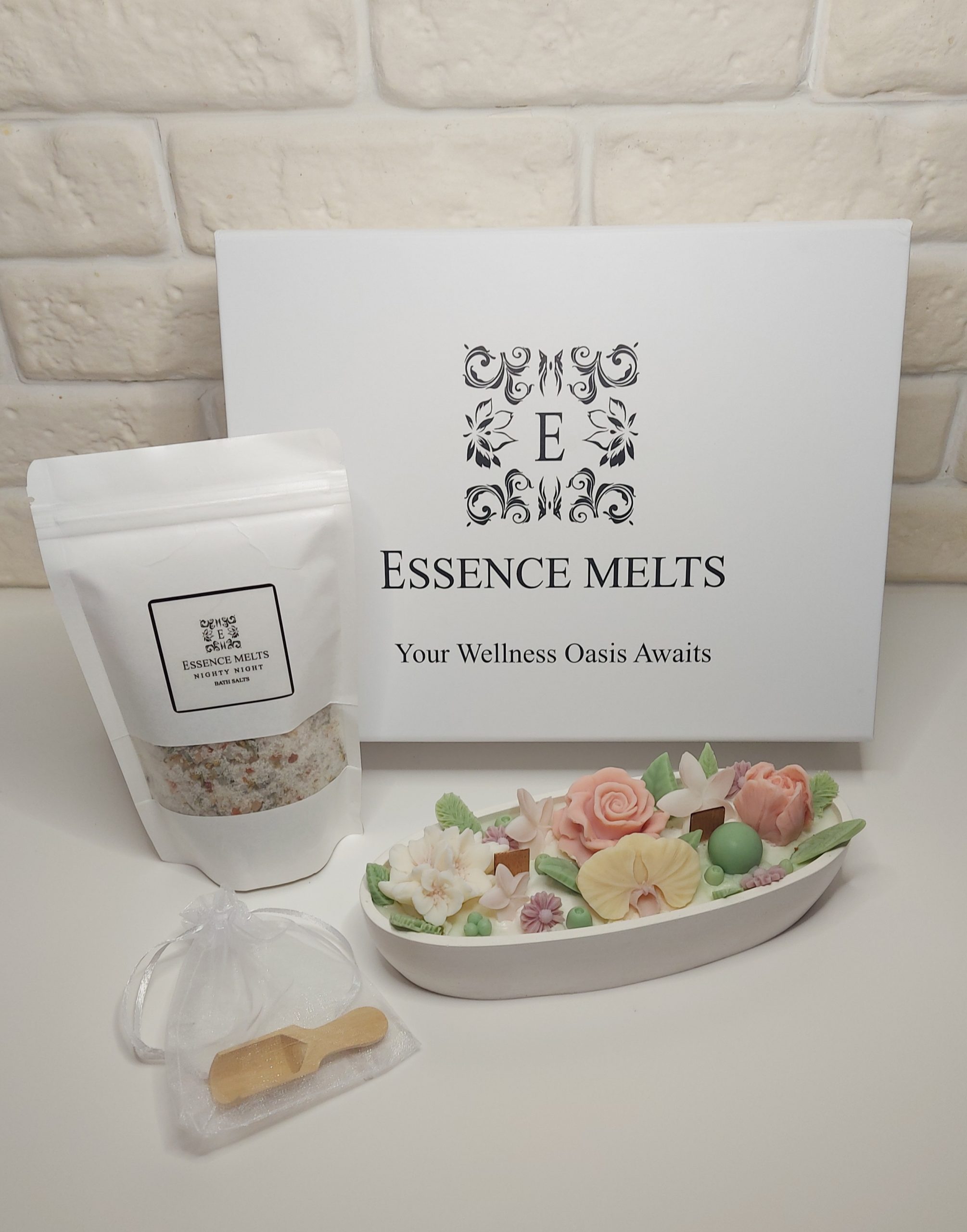 Discover the perfect blend of beauty and relaxation with the Bloom & Soak Gift Box. This handcrafted gift set combines an elegant wax floral candle with a luxurious package of bath salts, creating a thoughtful present for any occasion.