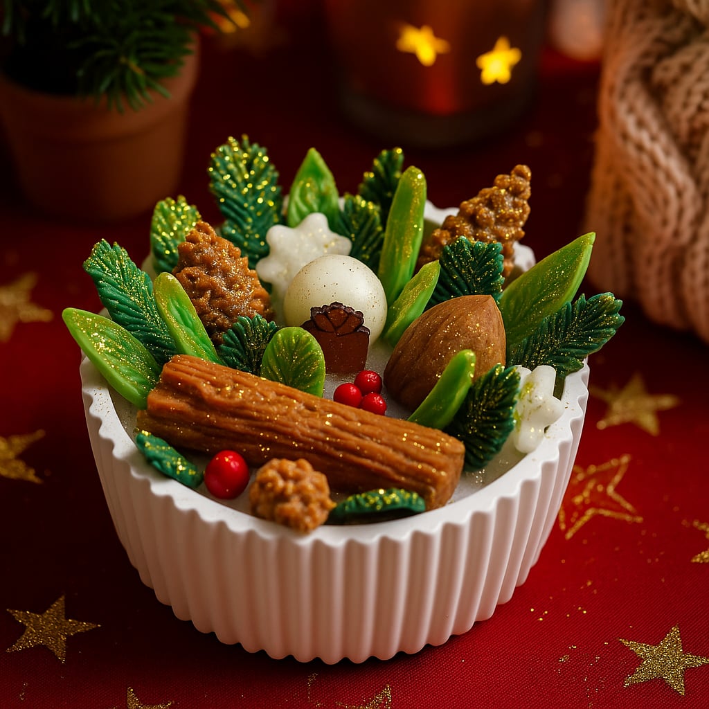 The Evergreen Forest Candle comes in a white ribbed, heat-resistant container, offering both safety and timeless elegance. Its handcrafted wax details resemble pinecones, green leaves, and winter berries, making it as decorative as it is aromatic. Therefore, it’s not just a candle — it’s a statement piece.