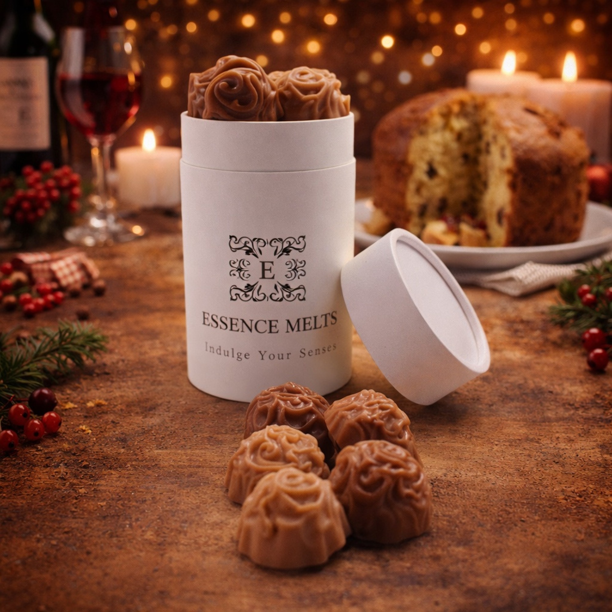 In addition to providing a captivating aroma, the panettone wax melt adds a touch of elegance to any space. Place your wax melts as a centerpiece, in a Wax Melter in any room to create a cozy ambiance. Its warm glow and inviting fragrance make it a perfect addition to your home decor.