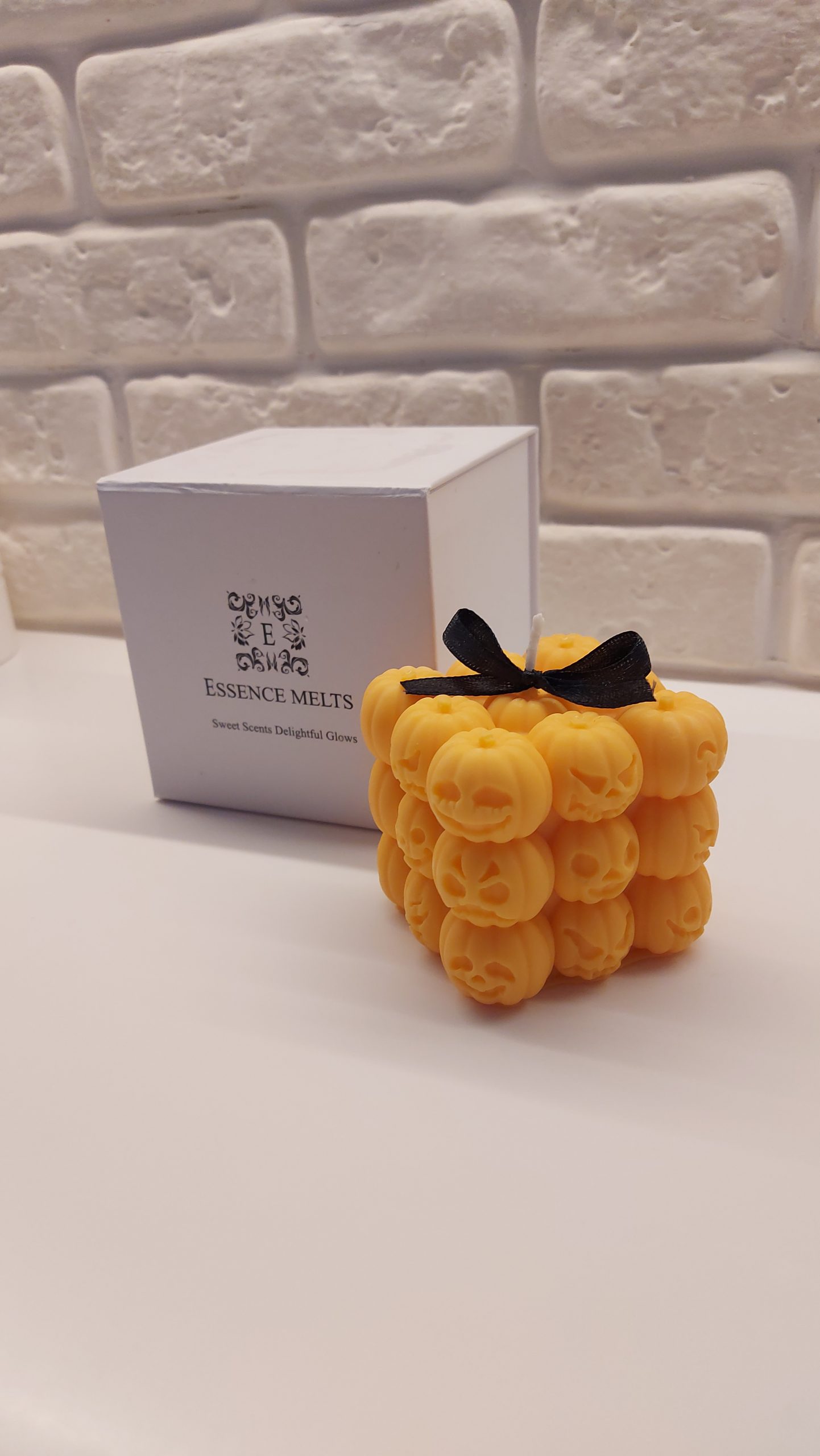 The cube design, combined with the whimsical pumpkin pattern, makes this candle a standout Halloween piece. It works beautifully for party tables, seasonal centerpieces, or mantel displays. You can also group it with other autumn décor for a layered, cozy look.